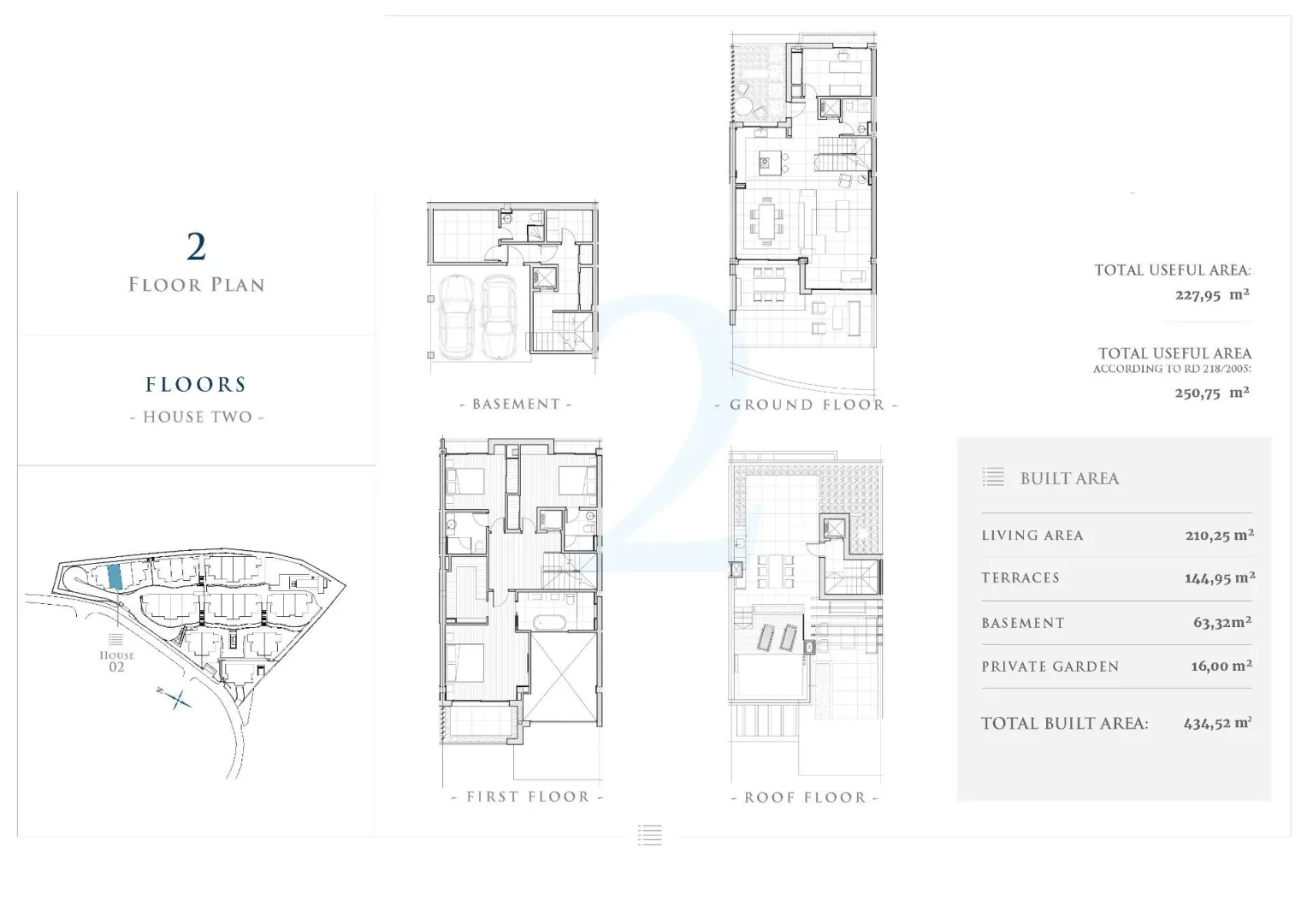 Each townhouse boasts a multi-level design, allowing you to fully enjoy panoramic sea views from various points of the property. With two layout options available, choose between 4 or 5-bedroom homes spread across basement, ground, first floors, and a solarium. The expansive interiors feature high-end finishes, large windows, and open-plan designs, seamlessly blending indoor and outdoor living spaces. Each home also includes a private underground garage for added convenience.
